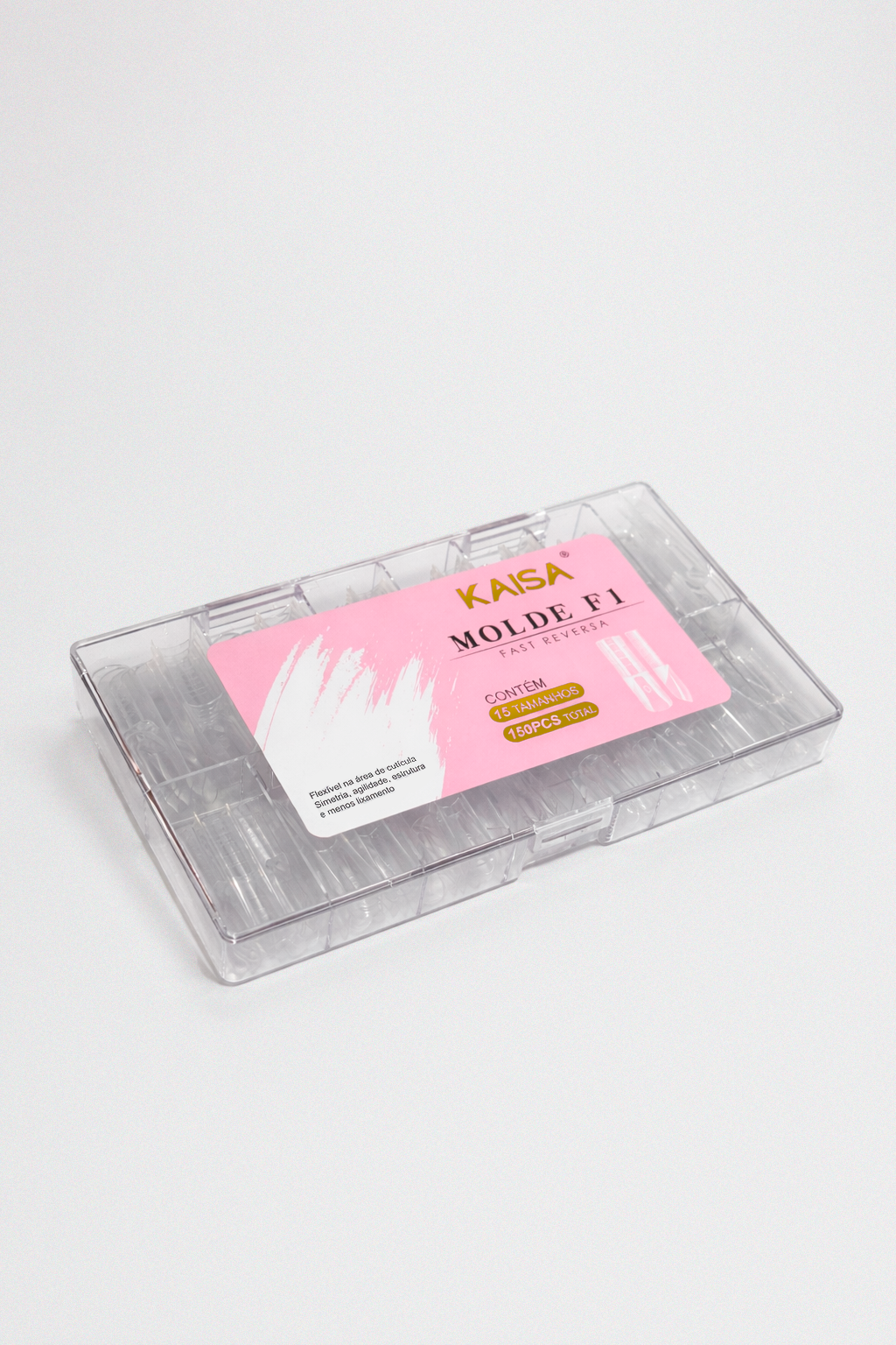 O Molde F1 Fast Reversa 0mm KAISA é ideal para profissionais que desejam agilidade, naturalidade e acabamento impecável em cada alongamento.